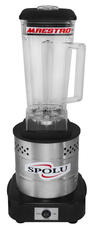 Liquidificador de Alta Rotação MAESTRO, tipo BLENDER, com copo de 2 litros muito resistente, liquidifica e mistura gelo e polpas de frutas congeladas. Possui corpo em inox, base em polipropileno e antiderrapante, copo em policarbonato e tampa emborrachada atóxica. com sobretampa acrílica. Equipado com faca em inox com 6 (seis) laminas de espessura de 2,1 mm em ângulos diferenciados que permitem maior rapidez e eficácia na preparação dos alimentos. Mancal em inox, blindado e com sistema de vedação e movimentação da hélice por rolamentos.